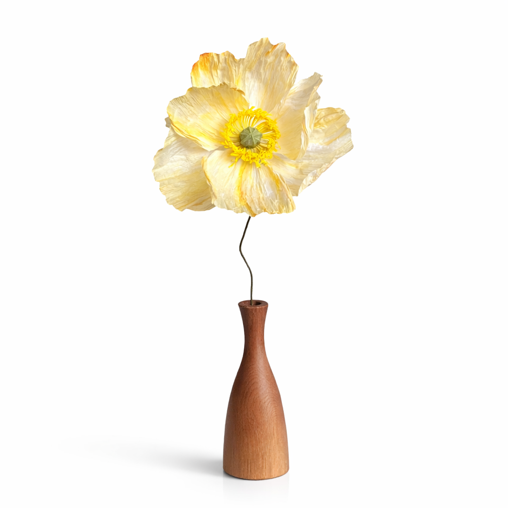 Çiçekler, İtalyan krapon kâğıdından tamamen el işçiliğiyle üretilmiştir. Kâğıtlar özel olarak boyandığı için her çiçekte desen ve renk tonları farklılık gösterebilir; bu da her birini özgün ve benzersiz kılar.
